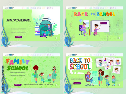Vector set of fashion salon, sewing workshop horizontal banners. Drapery, Studio tailoring and Atelier flat style design elements.