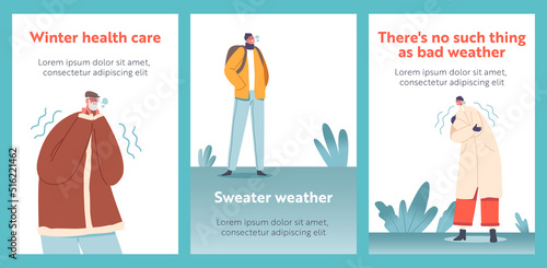 Vector set of fashion atelier square posters. Dummy, Fabric, Embroidery and Sewing suit concept design elements in flat style.