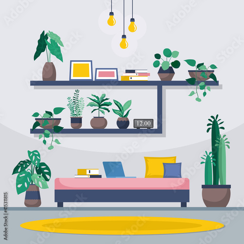 Vector set of fashion interior posters, banners. Catwalk, photographic and lightning equipment flat style design elements.