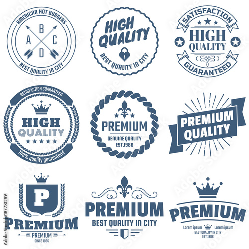 Daily fresh and natural milk blue emblems, logos and labels, vector hand drawn illustration isolated on white background. Milk hand lettering with dairy products, packaging and splashing silhouettes.