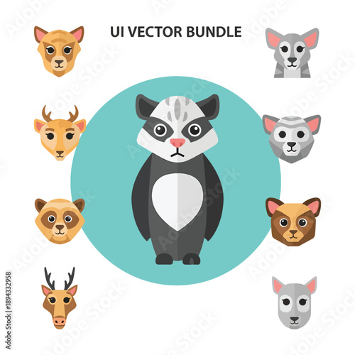 Vector set of hand puppets in flat style. Design elements and icons isolated on white background. Doll gloves with different animals.