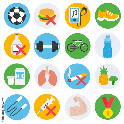 Vector set of healthy food icons in flat style design.