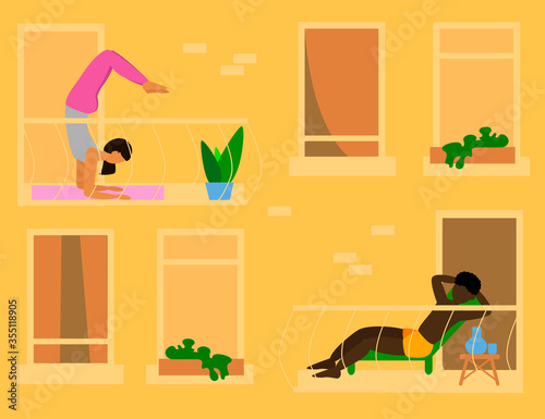 Vector set of healthy pregnancy. Morning exercise, fitness, fitball training, walk and yoga for pregnant women. Active healthcare lifestyle. Flat design