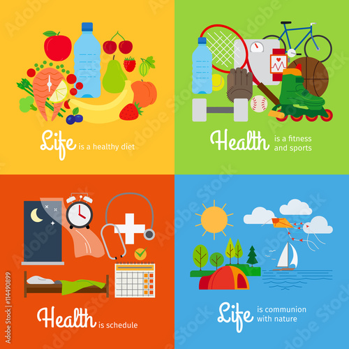 Vector set of horse riding posters. Stable, Cleaning horse, Training horse and Feeding horse flat style design elements.