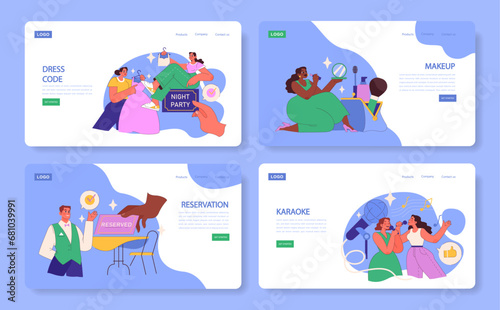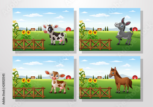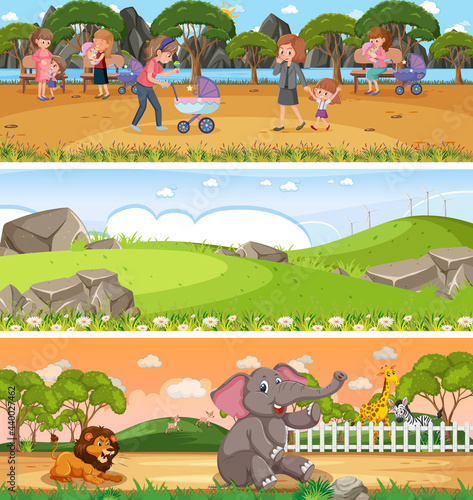 Vector set of horse theme. Pony riding in amusement park, horseback riding, horse show jumping and cowboy on horseback with lasso. Flat design