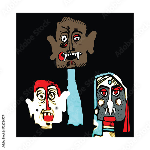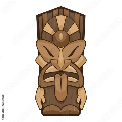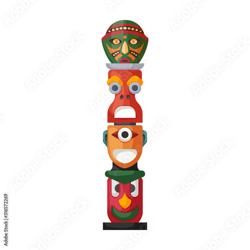 Vector illustration of Buddha, north American totem pole, ethnic tribal masks. Idols flat symbols, icons isolated on white background.
