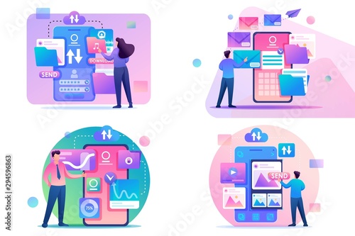 Vector set of investigation posters. Wiretapping, Investigation, Dog detective and Looking flat style design elements.