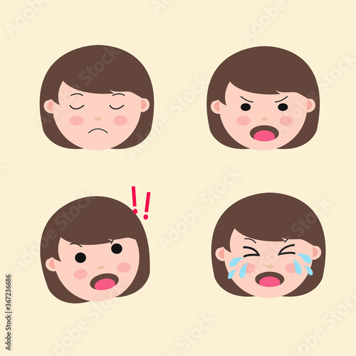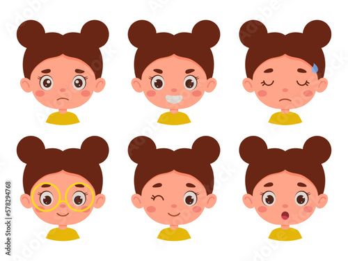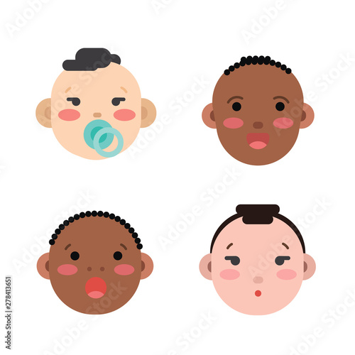 Vector set of little boys faces with different kinds of facial expressions. Smiling, calm, astonished faces, with sticking out tongue. Feelings and emotions concept design elements.