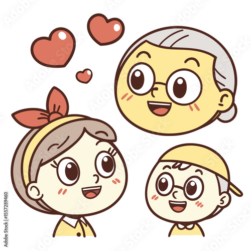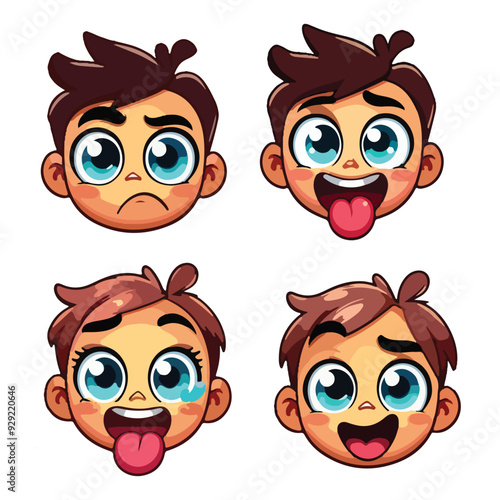 Vector set of little girls faces with different kinds of facial expressions. Laughing, smiling, calm, frightened faces. Girl in eyeglasses. Feelings and emotions concept design elements.