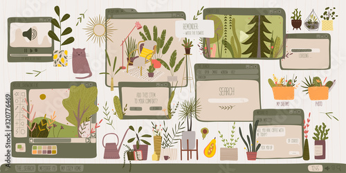 Vector set of luxury hotel posters, banners. Hotel porter, doorman, receptionist, waiter services, housekeeping flat style design elements.