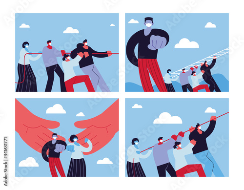 Vector set of martial arts. Kendo, kudo, aikido and kickboxing. Fighters in sport positions.Flat design.