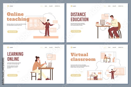 Vector set of modern gadgets concept horizontal banners. We work 24 7, Home internet, Restaurant with Wi Fi design elements in flat style.