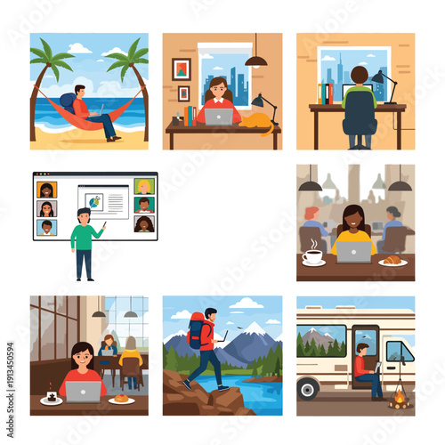 Vector set of modern gadgets for daily life concept posters, banners. Sofa, Park, Cafe, Teenager design elements in flat style.