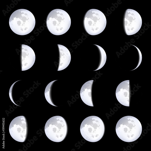 Vector lunar phase icon set. The whole cycle from new Moon to full Moon on transparent background.