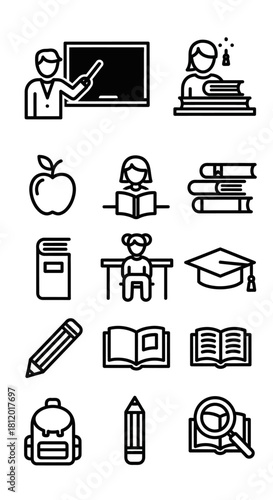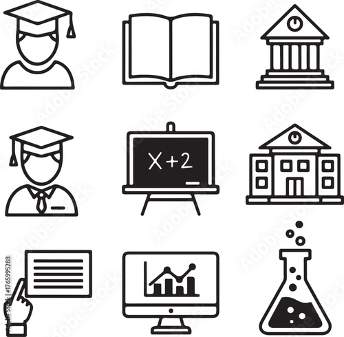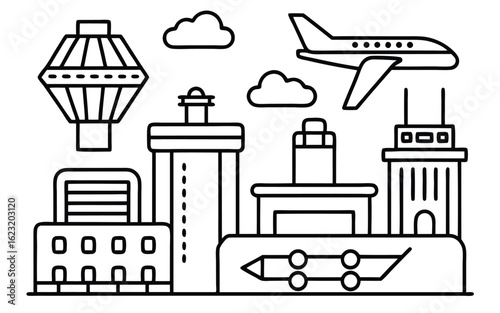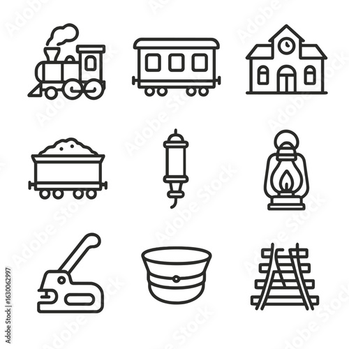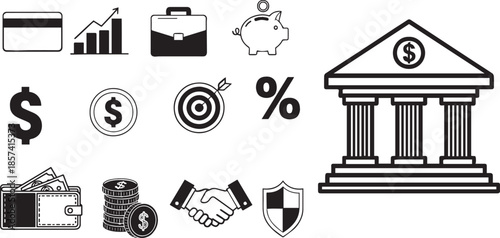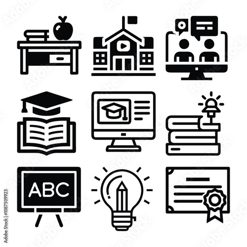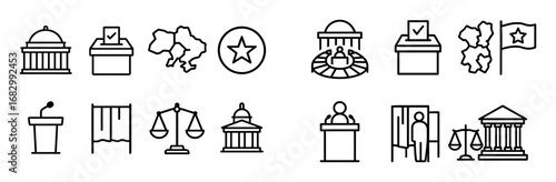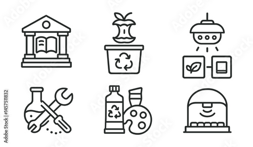 Vector set of museum isolated icons. Black and white museum symbols and design elements. Art, statue, museum building, ticket.