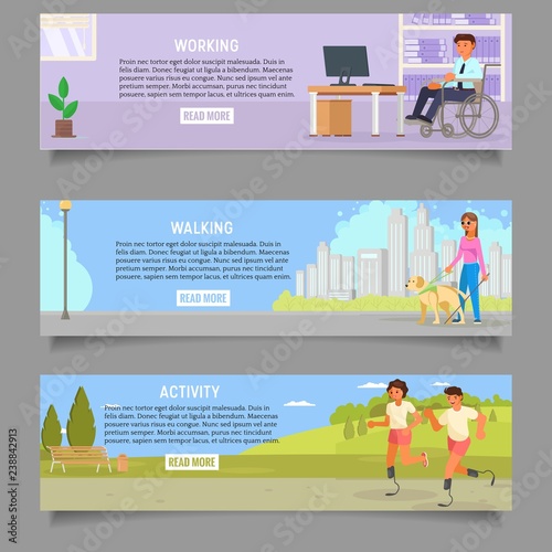 Vector set of office concept horizontal banners. Analysts, The working process, Creative process design elements in flat style.