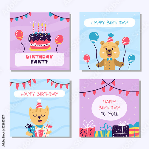Vector set of pet grooming cards, flyers, posters with cute dogs taking bath, getting haircut, animal care accessories. Dog grooming services and supplies advertising banners.
