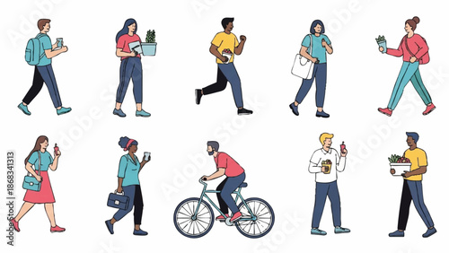 Vector set of photographers, videographers, journalists shooting and interviewing people, making reports for mass media. Couple taking selfie. Photo, video concept design elements, icons in flat style