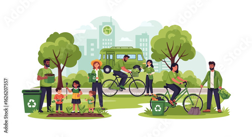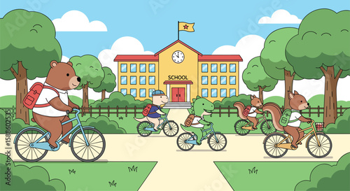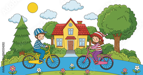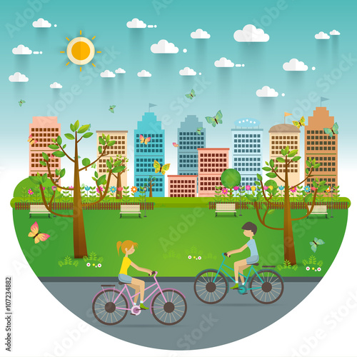 Vector set of places where you can ride bike. City, forest, park and mountains cycling. Active lifestyle. Flat design
