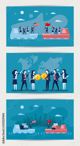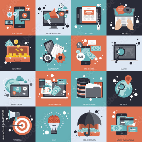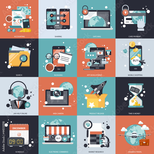 Vector set of planet exploration posters, banners. Controller, Space station, Investigations and Flag concept design elements in flat style.