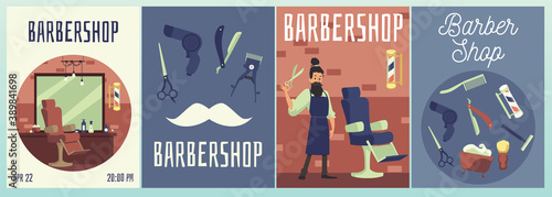 Vector set of posters with people in cafe and restaurants. Lunch, breakfast, dinner.