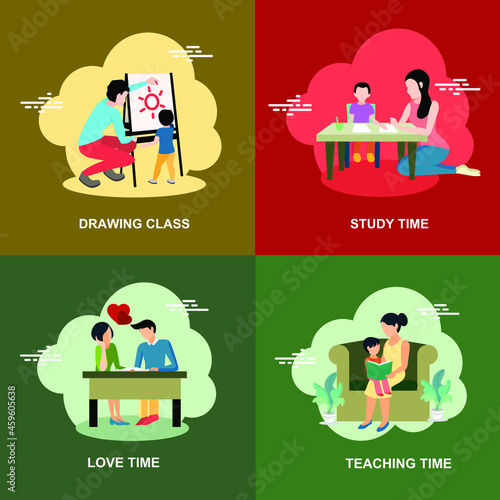 Vector set of purchases concept posters, banners. Online store, Delivery, Purchases and Family design elements in flat style.
