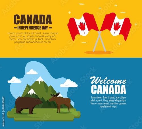 Vector set of recreation posters, banners. Winter countryside and mountain peak with waterfall landscapes backgrounds. Advertising flat style design elements.