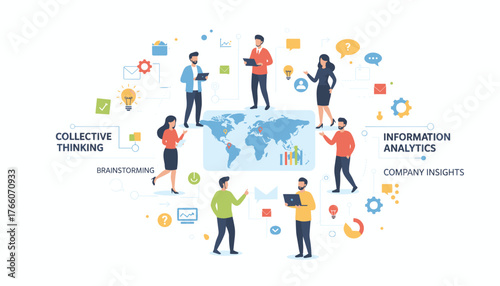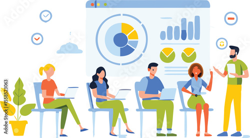 Vector illustration of chemistry professor giving lecture, scientists making scientific discoveries. Science people, lab equipment symbols, icons isolated on white background. Flat style design.
