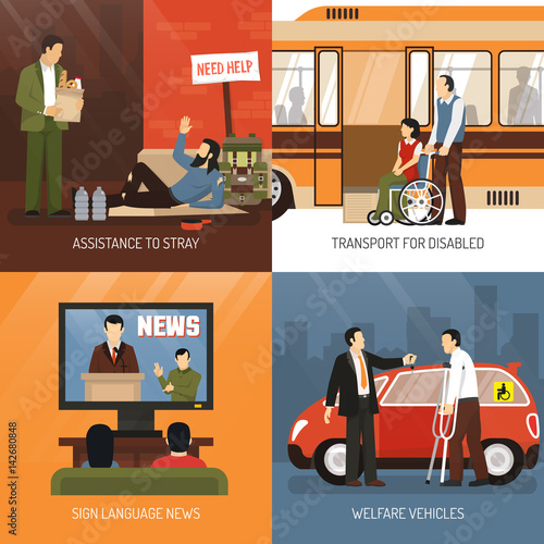 Vector set of shop and supermarket design elements in flat style. People shopping at fashion clothing store, supermarket, equipment and electronics shop.