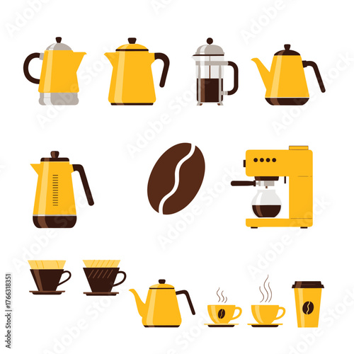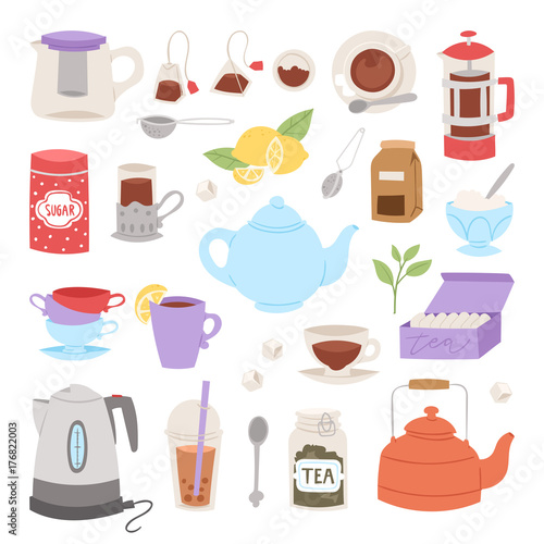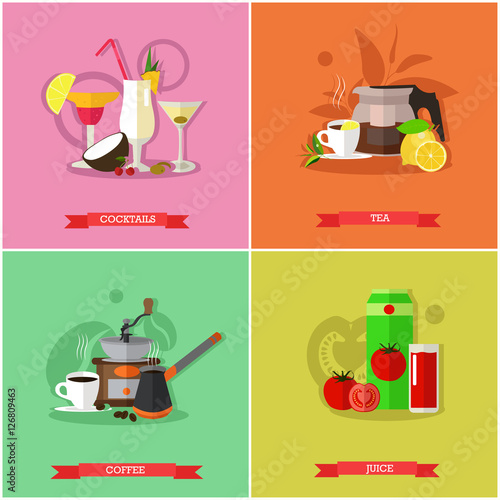 Vector set of soft drinks. Fresh milk, juicy lemonade, sweet soda and mineral water. Popular nonalcoholic beverages. Flat design