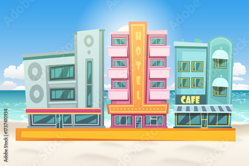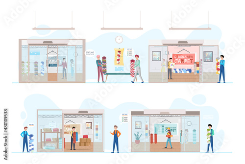 Vector set of spa interior concept posters, banners. Spa hotel with swimming pool, relax zone, jacuzzi, bathroom. Flat style design.