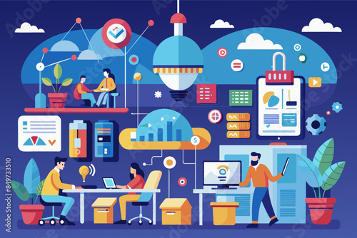 Vector set of space concept posters, banners. Mission control center, outer space, space bases on Mars and on the Moon, space technologies flat style design elements.