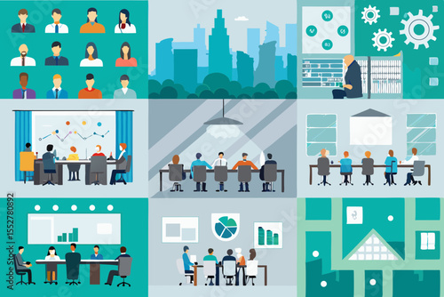 Vector set of space posters, banners. The Moon investigation, space and science center, scientific laboratory, aerospace technology concept flat style design elements.