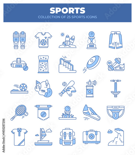 Vector set of sport icons in thin line style. Volleyball, lacrosse, skiing, fencing, golf, backpack. Website UI and mobile web app icon. Outline design illustration