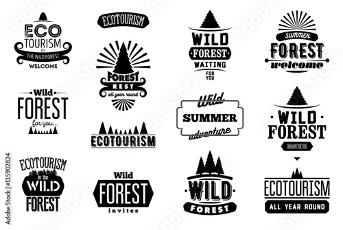 Vector set of summer season labels in vintage style. Design elements, icons, logo, emblems and badges isolated on white background. Summer camp, beach holidays, tropical sea vacations. - stock vector