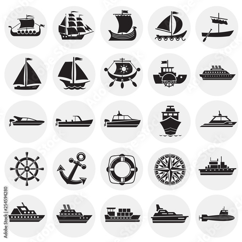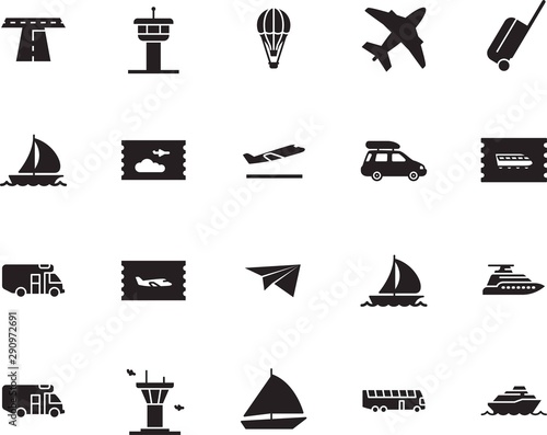 Vector set of summer holidays, cruise vacation, road trip, kayaking and surfing water sports activities vintage monochrome logos, emblems, labels and badges.