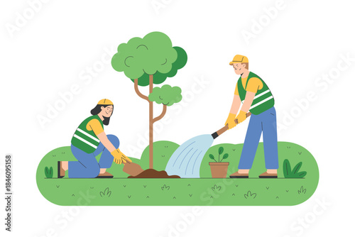 Vector illustration of travelers going hiking, camping. Tourist people symbols, icons isolated on white background. Flat style design.