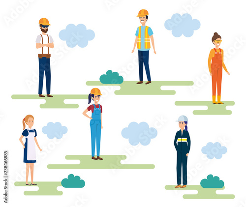 Vector illustration of travelers are photographed with animals at zoo, taking photo of nature, taking selfie. Tourist people symbols, icons isolated on white background. Flat style design.
