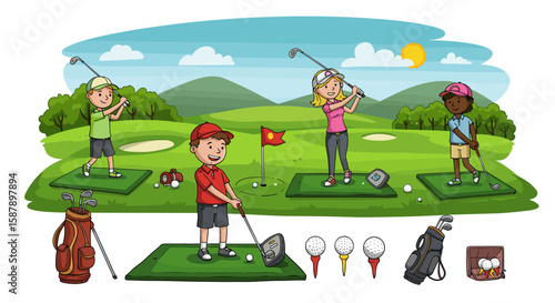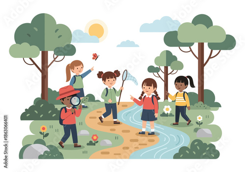 Vector set of tourist posters, banners. Tourist card, Guide, Hike and Camping concept flat style design elements.