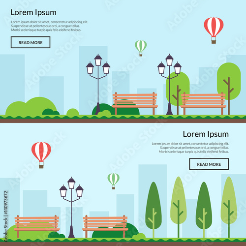 Vector set of weather concept posters, banners. Blizzard, rain and storm, cityscape, city park and street flat style design elements.