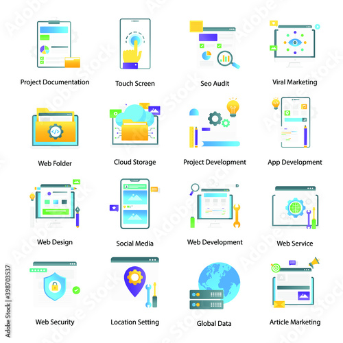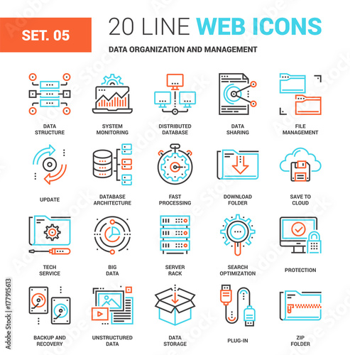 Vector set of web development and office icons in thin line style. Website UI and mobile web app icon. Outline design illustration
