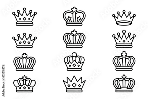 Vector set of wedding pictograms. Black outline marriage celebration symbols and isolated icons for web site design and mobile apps. Black and white.