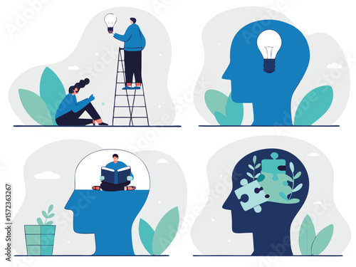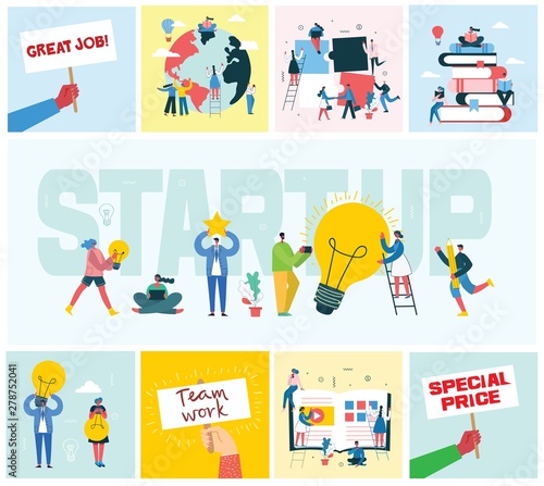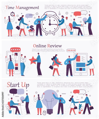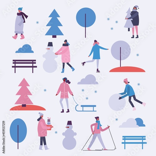 Vector set of winter time concept posters, banners. Snowdrifts, Making snow angel, Winter walk and Sledding design elements in flat style.
