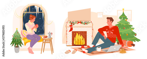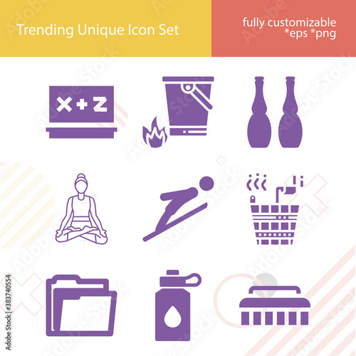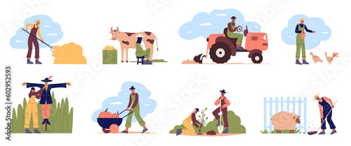 Vector set of workouts for men and women in the gym or fitness studio. Cardio trainings, aerobics, exercises with dumbbells and fitness, sports equipment and training machines. Flat design