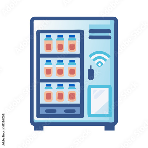 Vector snack vending machine illustration. Automatic device front view with push button. Automat selling chips, nuggets, cracker bisquit, chocolate bar isolated icon on white background