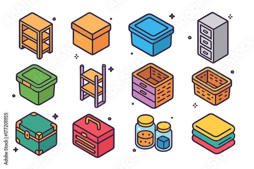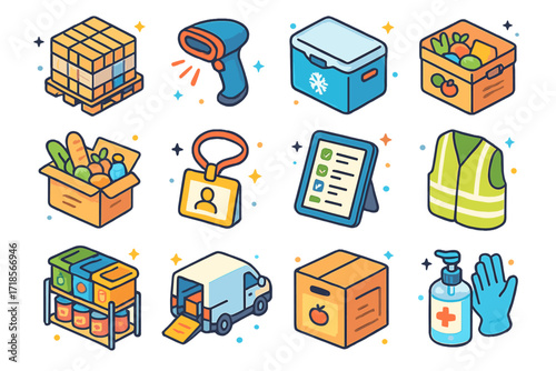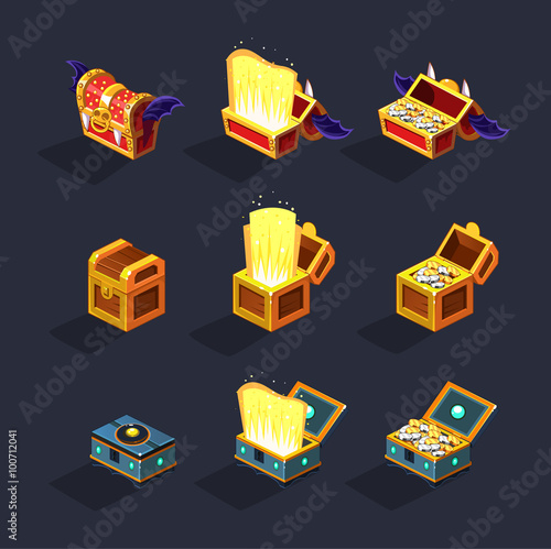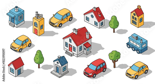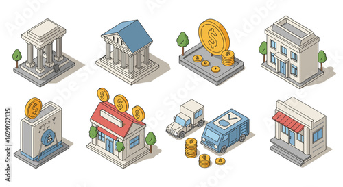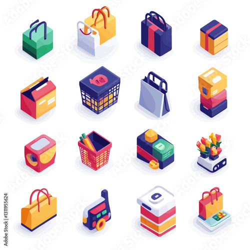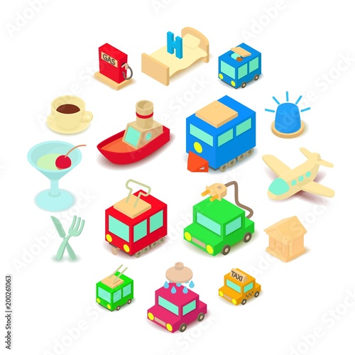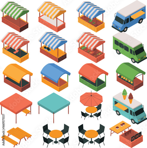 Vector set of street food truck and cart isometric icons. Fast food mobile shops for street food festivals.