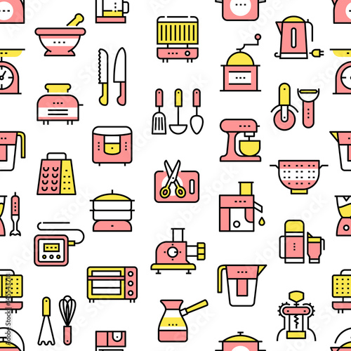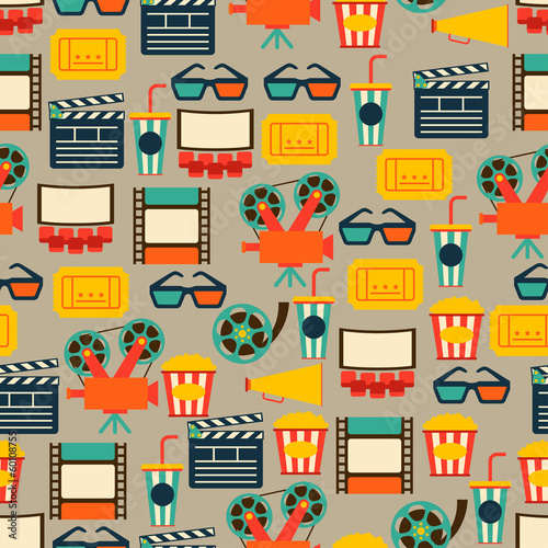 Vector seamless pattern with theater and cinema arts decorative icons. Thin line art flat style design background, wallpaper.
