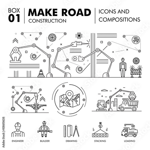 Archaeology advertising poster banner template. Vector thin line art flat style design elements, icons for web banners and printed materials.