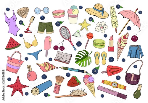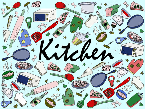 Vector seamless pattern with bbq grilled meat, fish, sauce, chili, beer and grilling equipment. Thin line art flat style design barbeque background, wallpaper.