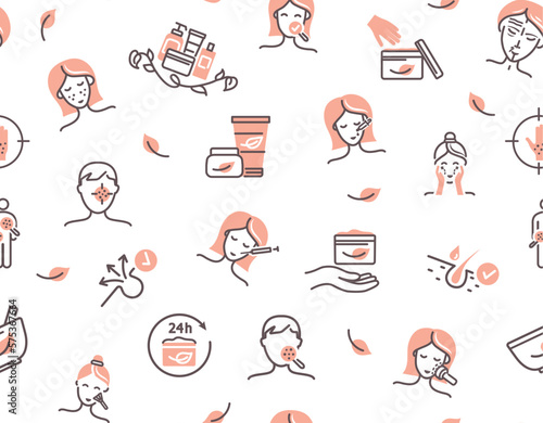Vector seamless pattern with professional cosmetologist and hair stylist tools and accessories. Thin line art flat style design beauty background, wallpaper.